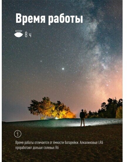 Magnet and carabiner for attaching a flashlight; battery type: AA; detailed equipment: - lantern;<br/>