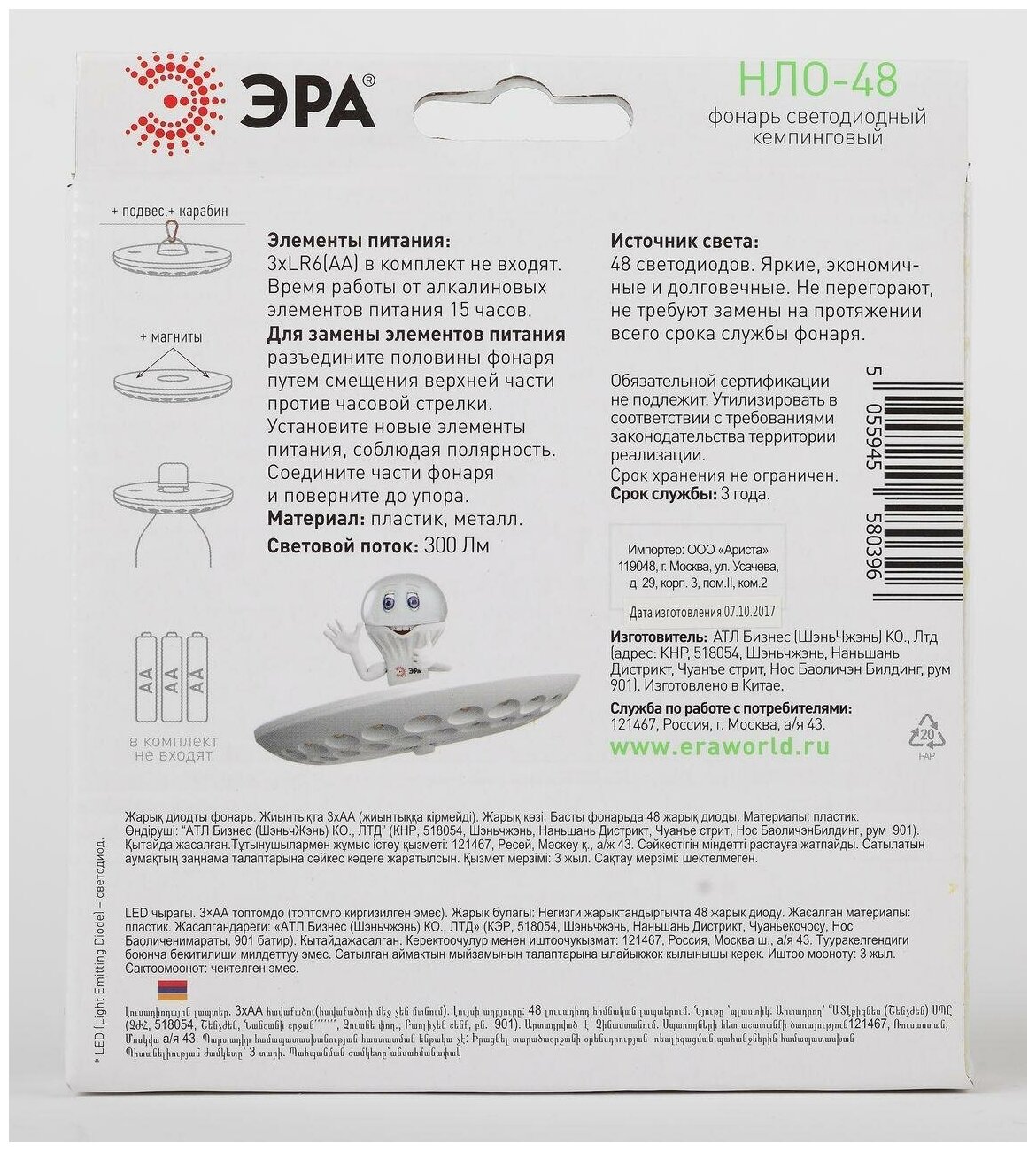 Type: camping lantern, light source: LED, power type: battery, features: shockproof housing, cold white light, impact resistance, luminous flux: 300 lm, lighting range: 21 m, maximum working time