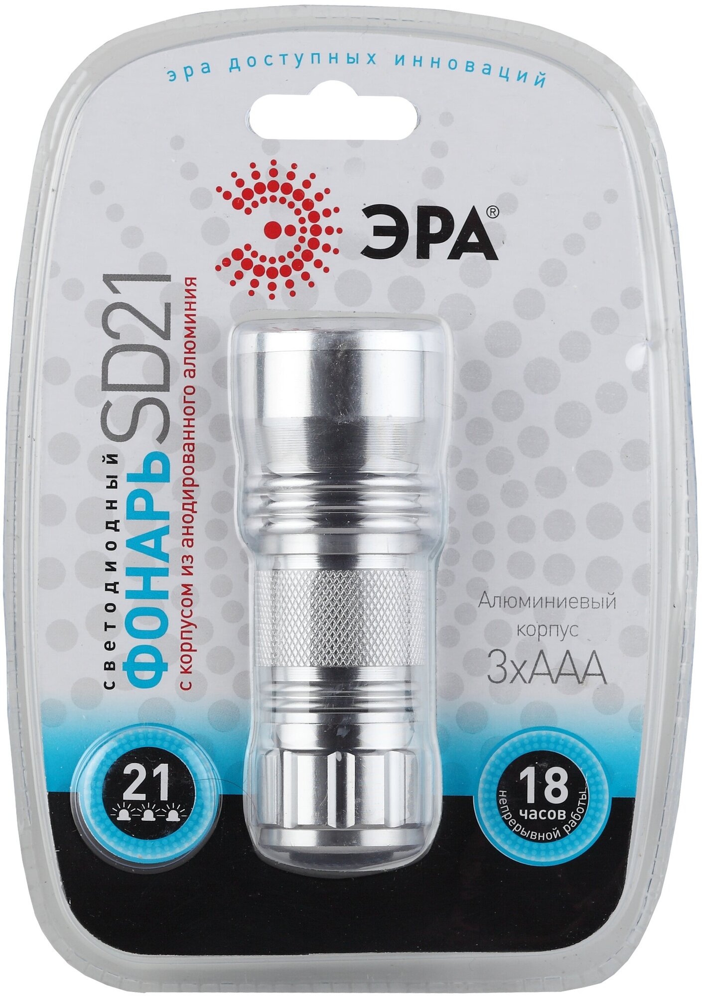 Type: hand torch, light source: LEDs, power supply: batteries, luminous flux: 60 lm, lighting range: 59 m, maximum operating time: 18 h, body material: aluminum