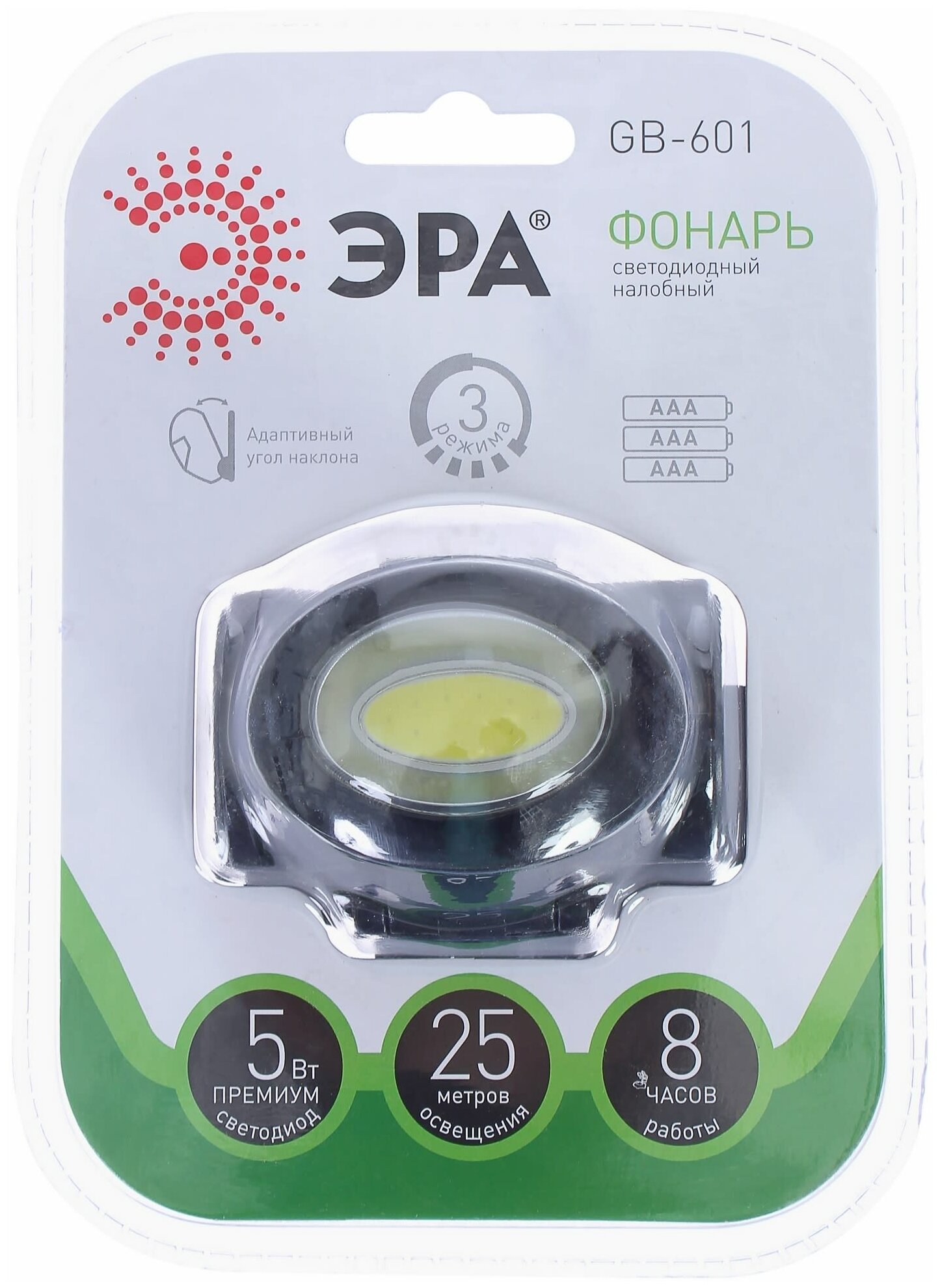 Type: headlamp, accessory type: flashlight, light source: LED, power type: battery, features: high beam, flashing, warm white light, shockproof housing, eco mode, tilt adjustment,