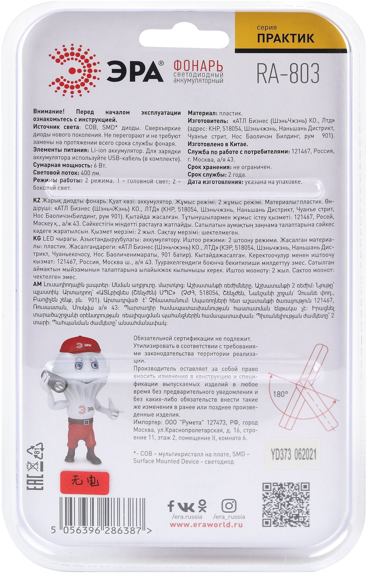 Hook, magnet, miscro USB; detailed complete set: LED lamp manual - 1 piece; number of batteries: 1; number of operating modes: 2