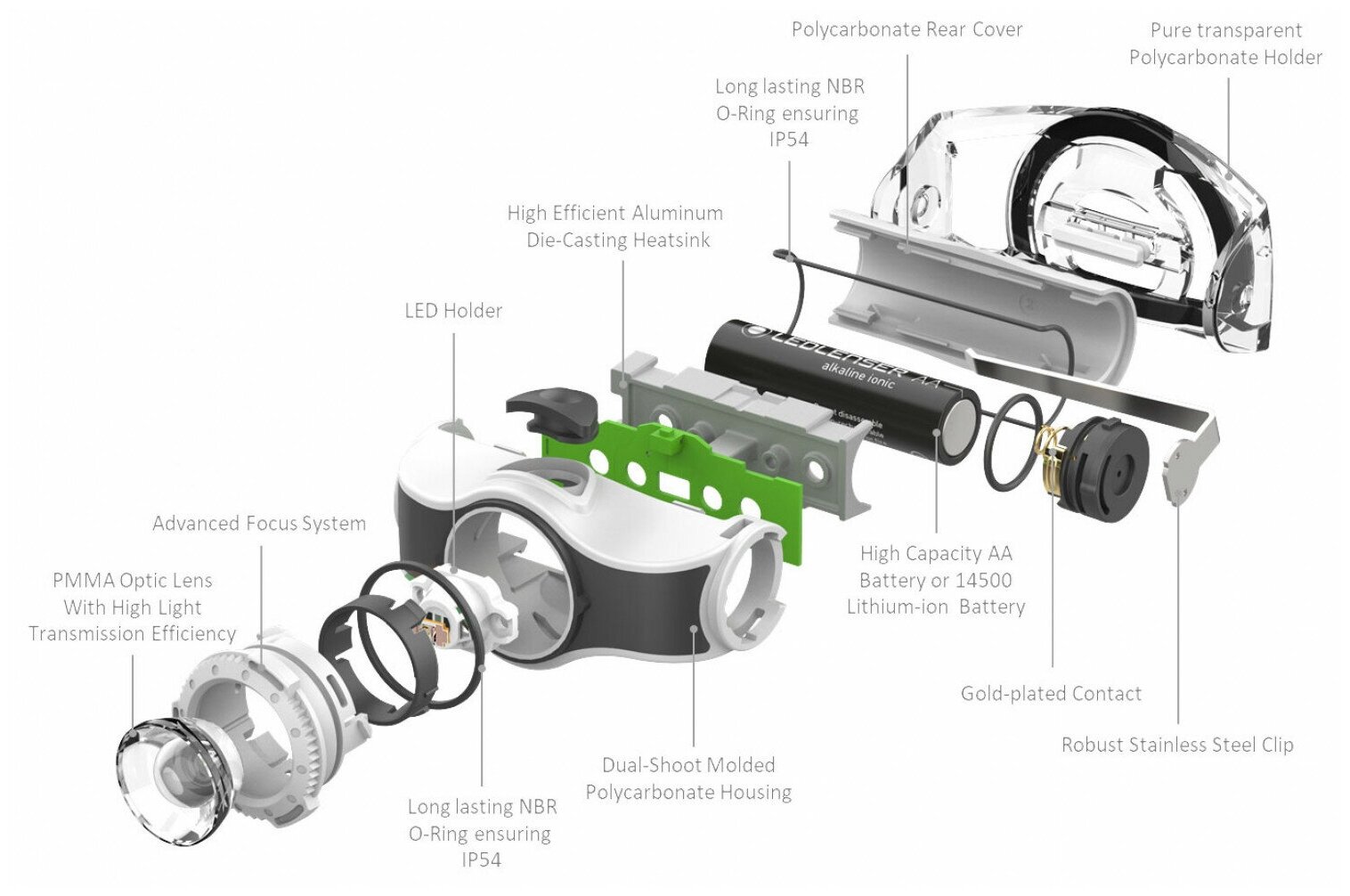 Removable head with clip; battery type: AA; detailed equipment: - AA battery;