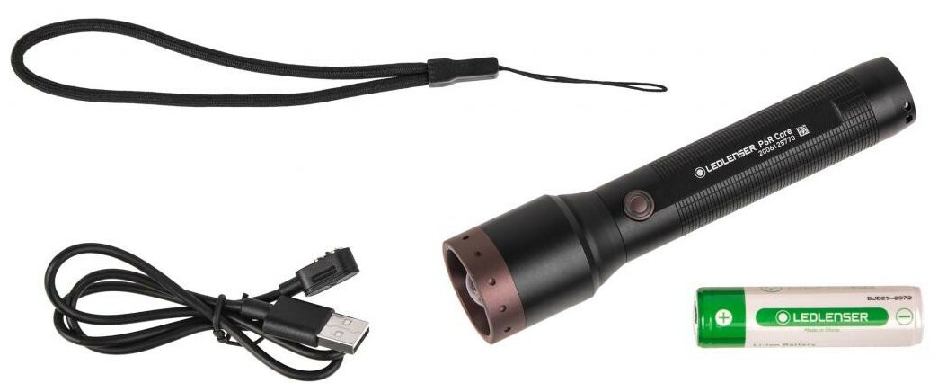 Type: hand lamp, light source: LEDs, power type: built-in battery, power consumption: from USB, features: moisture protection, luminous flux: 900 lm, lighting range: 240 m