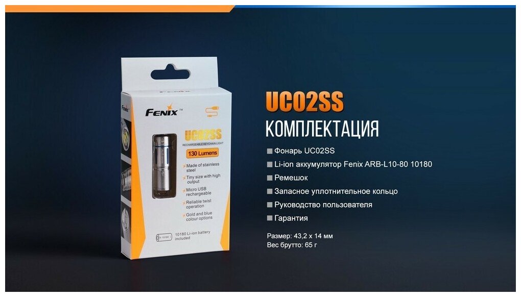 Type: flashlight, light source: LEDs, power type: built-in battery, power consumption: from USB, features: high beam, impact-resistant housing, economy mode, luminous flux: 130 lm, lighting range
