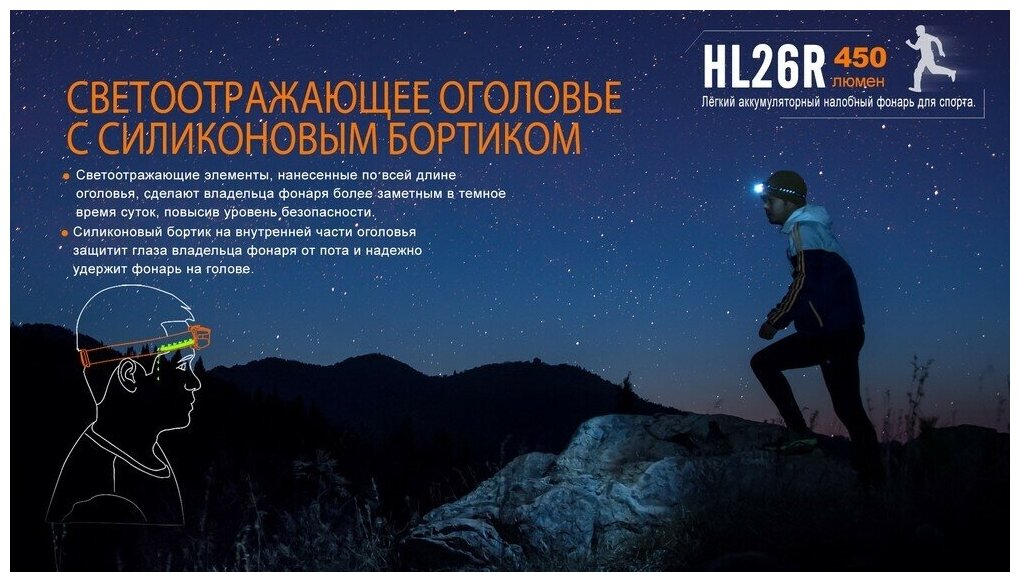 Type: headlamp, light source: LED, power type: built-in battery, power consumption: from USB, features: high beam, turbo mode, signal mode, shockproof housing, economy mode, light