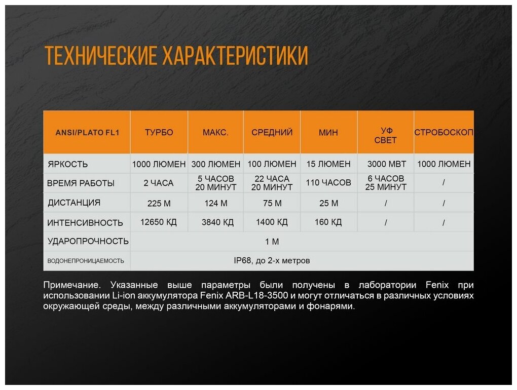 Type: Hand-held tourism lantern, light source: LEDs, power type: batteries, features: moisture protection, high beam, stroboscope, impact-resistant housing, economy mode, luminous flux: 1000 lm, lighting range