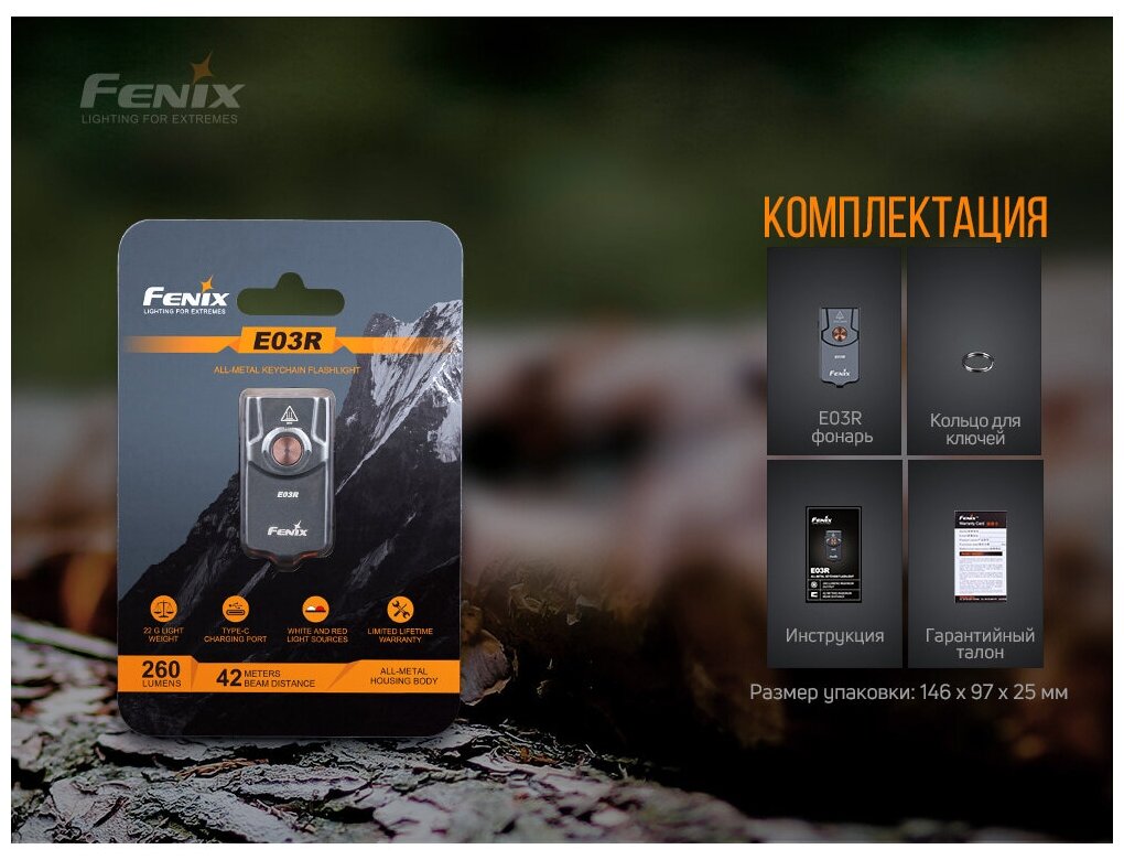 Charging connector - USB Type-C; battery type: Li-pol; battery charging time: 1.3 h; detailed equipment: lantern, key ring, information leaflet, manual, warranty card; number of operating modes: 6;
