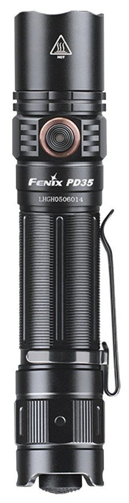 Luminus SFT40 diode, head diameter 25.4 mm, body diameter 22.8 mm; battery type: ICR18650; detailed equipment: Fenix PD35 V3.0 flashlight, case, hand strap, 2 spare O-rings, Micro-USB charging cable, battery