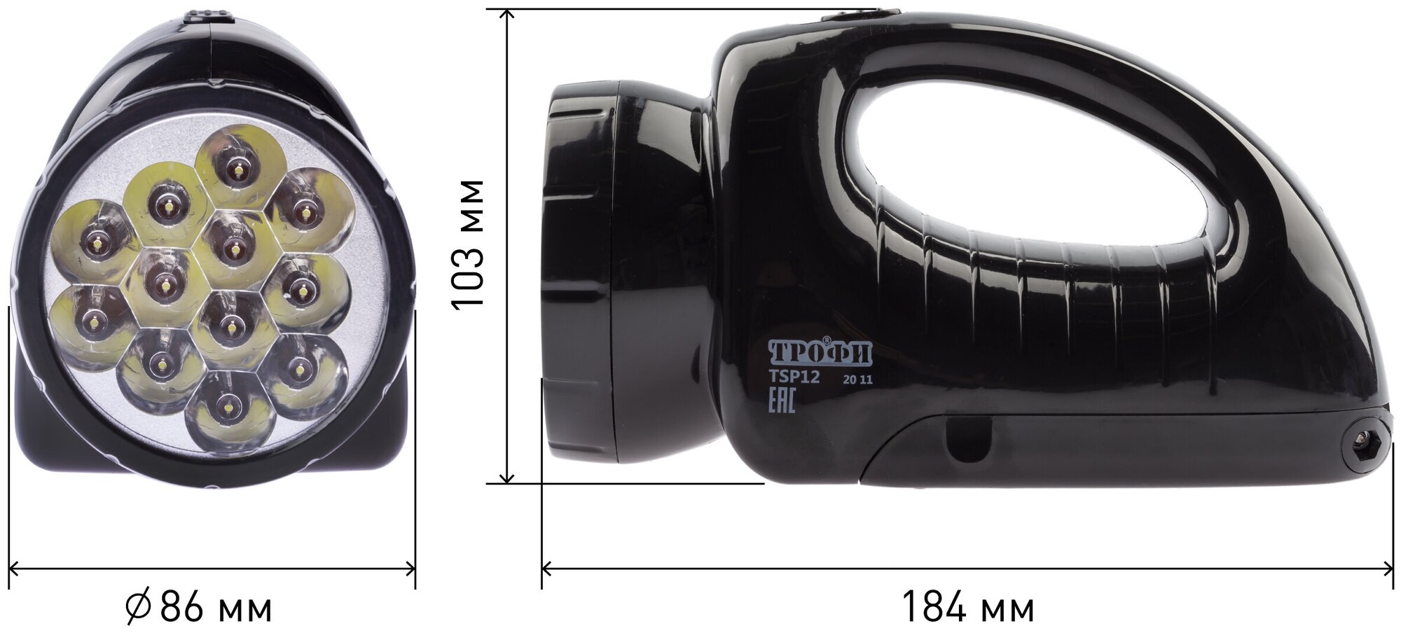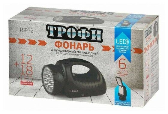 Lamp type: 12+18 white LED; detailed equipment: LED spotlight with a built-in lamp - 1 pc.; number of batteries: 1; number of operating modes: 2; power consumption: mains