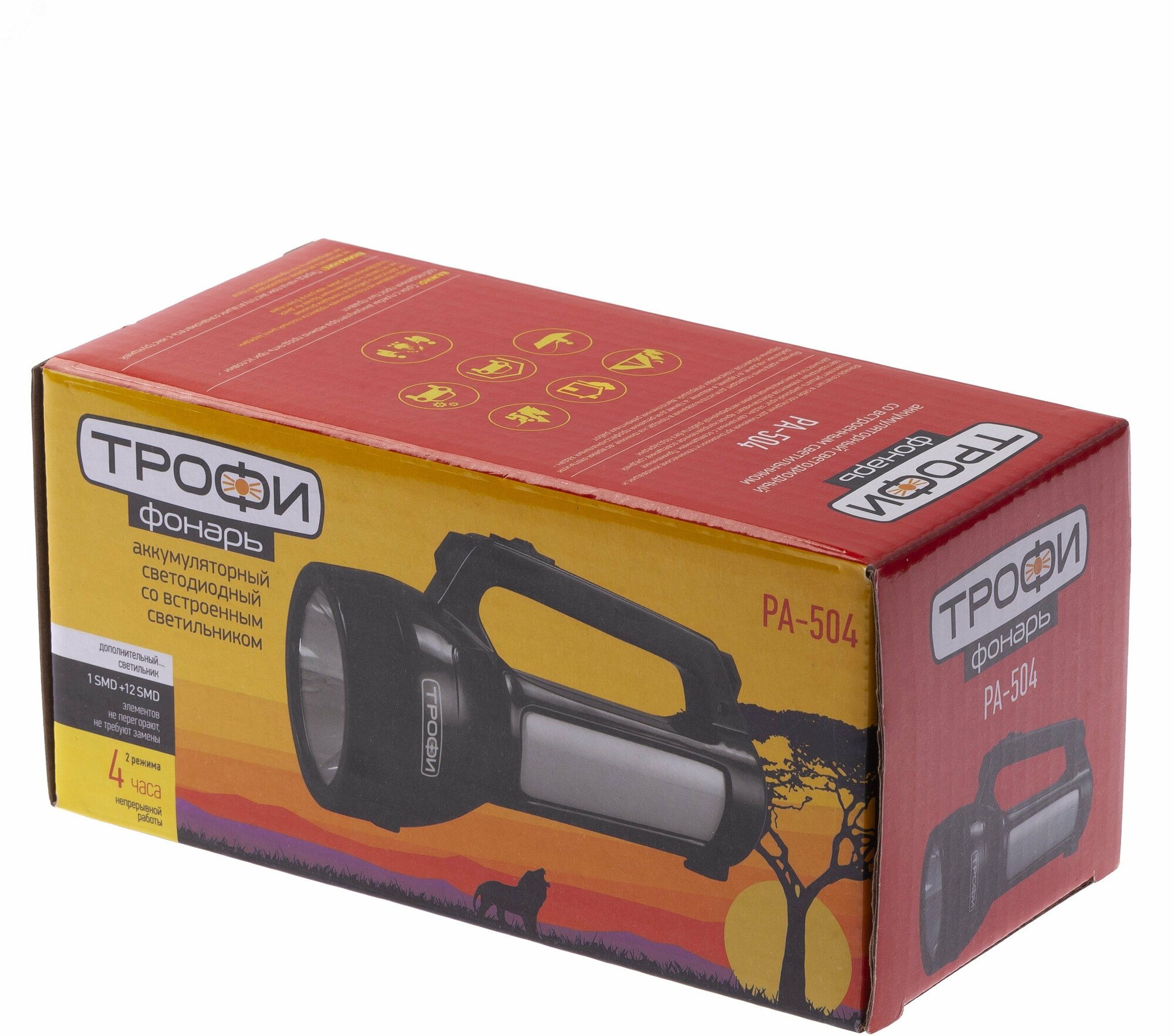 Type: hand torch, light source: LEDs, power type: built-in battery, features: spotlight, cold white light, impact resistance, luminous flux: 110 lm, lighting range: 350 m, maximum operating time