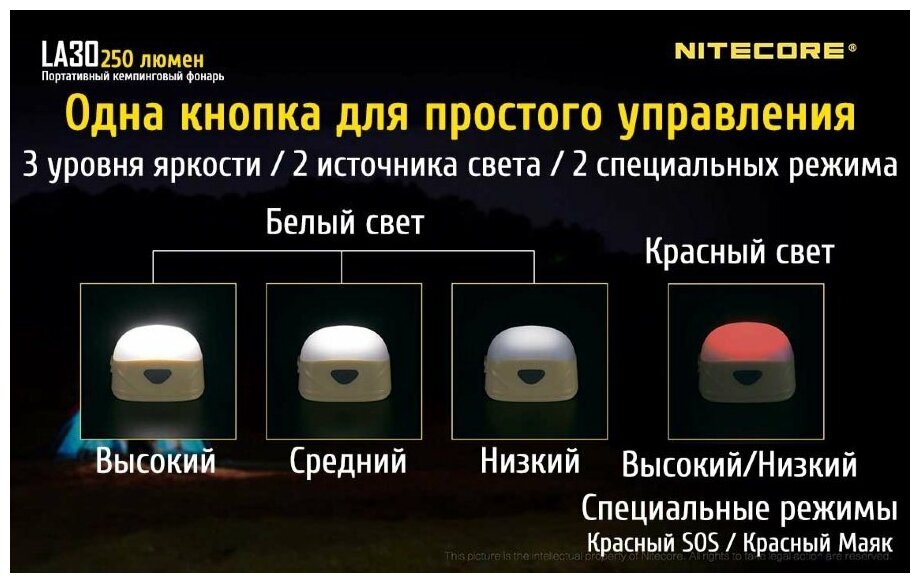 Type: camping lantern, light source: LEDs, power type: built-in battery, power consumption: from the car's onboard network, from the mains, features: red light, economy mode, maximum operating time