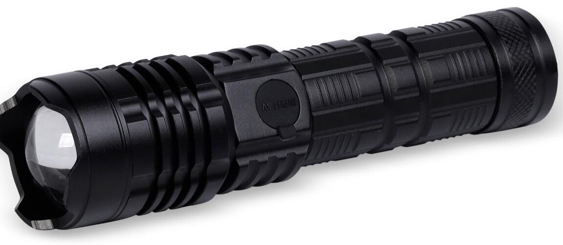 Rechargeable LED flashlight CREE XHP-50 18W with beam focusing system, black, Smartbuy