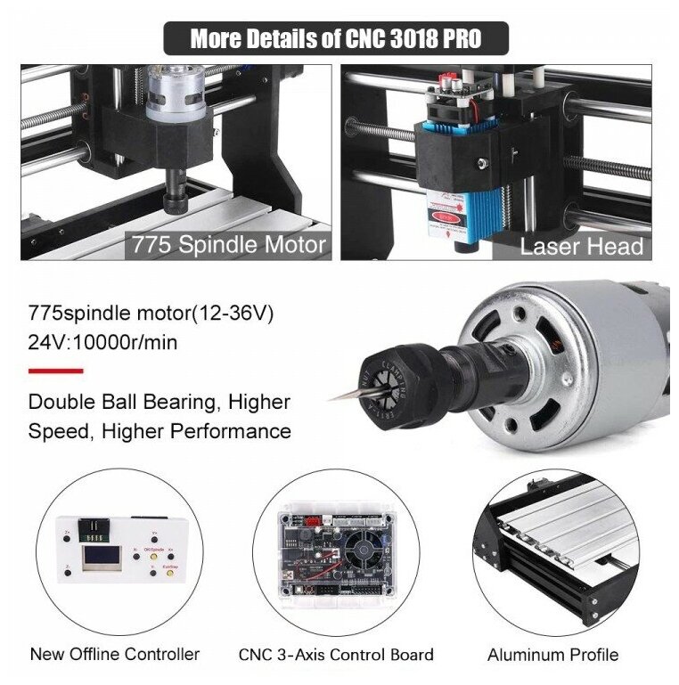 Laser and milling engraving machine CNC3018 PRO, 5500 mW / 10000 rpm