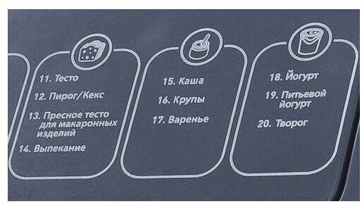Features: crust color selection, dispenser, temperature maintenance, baking weight adjustment, timer, accelerated baking, programs: gluten-free baking, yeast-free baking, Borodino bread, jam, kneading test