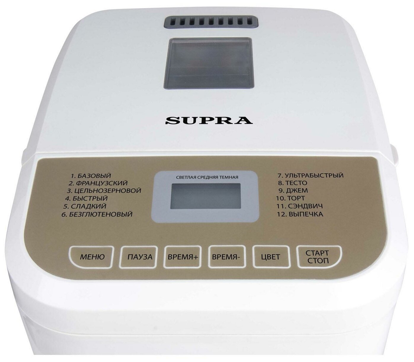 Features: choice of crust color, temperature maintenance, timer, accelerated baking, Display, programs: gluten-free pastries, jam, dough kneading, wheat bread, sweet pastries, French baguette, Quick bread, V