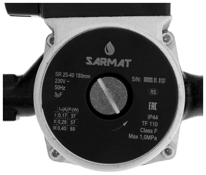Circulating SARMAT SR 25-40/130, 37/57/89 W, head 4 m, cable 1.2 m. Packing pcs: 1
