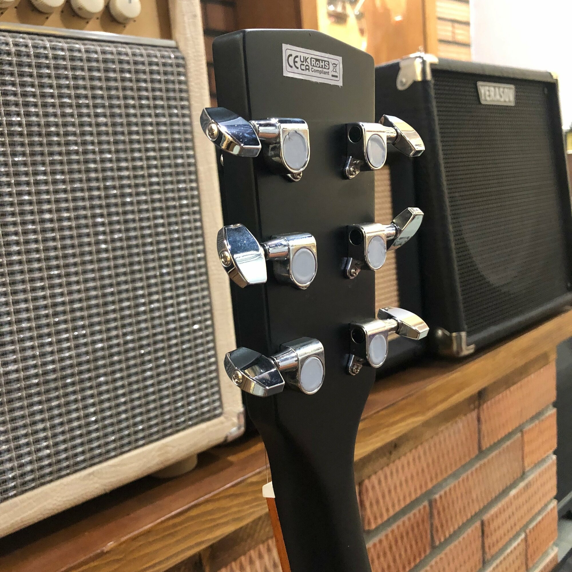 Type: electro-acoustic guitar, number of frets: 20, body material: spruce, neck material: mahogany, color: black