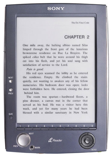 Display type: E-Ink, diagonal: 6", design features: paging buttons, book and document formats: DOC, LRF, PDF, RTF, TXT, display resolution: 800x600