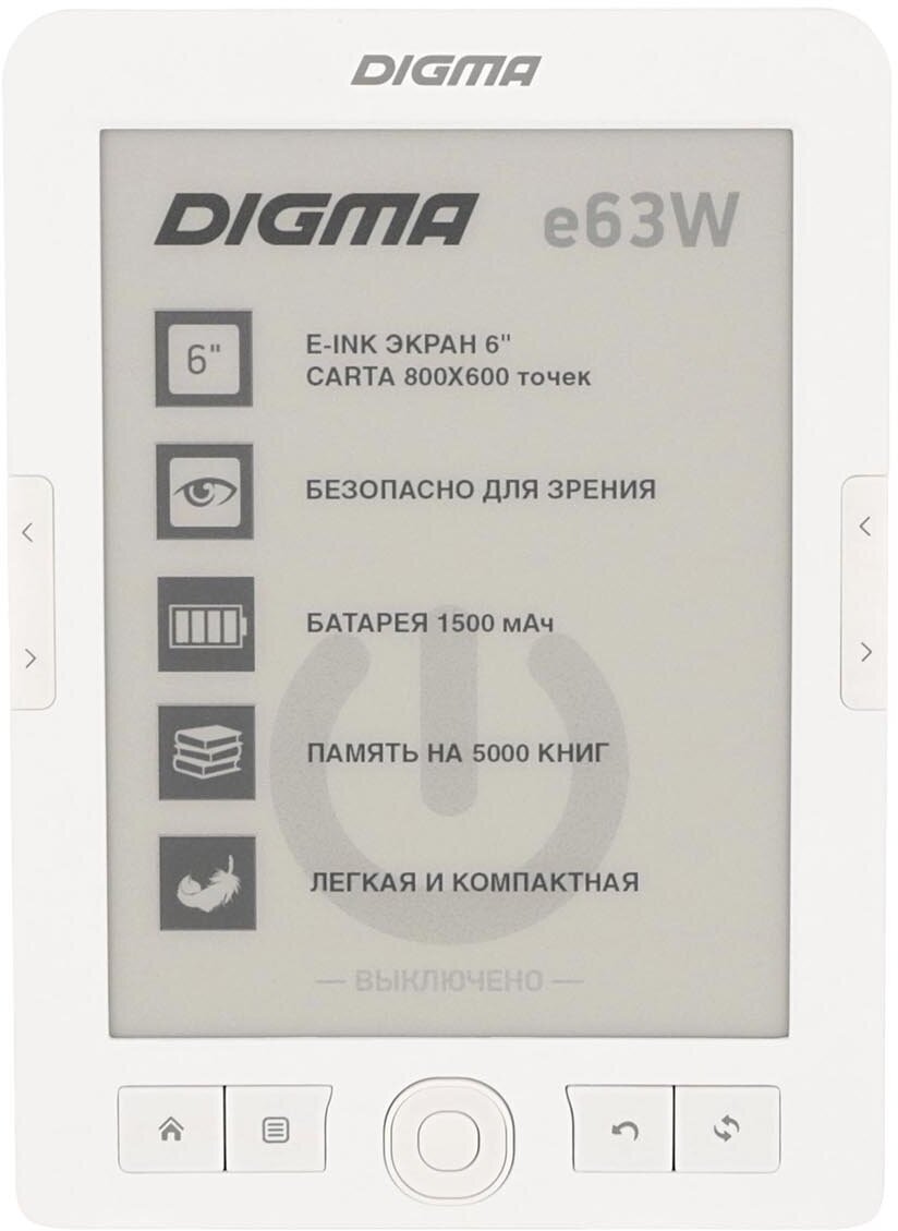 Display type: E-Ink, diagonal: 6, E-Ink display generation: Carta, design features: paging buttons, book and document formats: CHM, DJVU, DOC, EPub, FB2, HTML, PDF, RTF, TXT, resolution display: 800x600