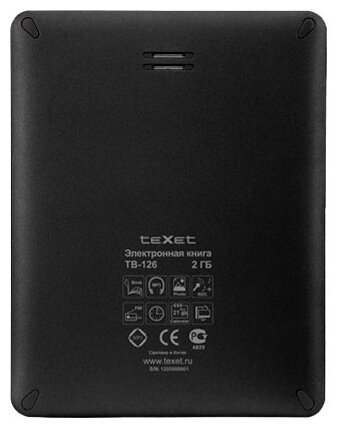 Display type: E-Ink, diagonal: 6, E-Ink display generation: Vizplex, book and document formats: EPub, FB2, HTML, PDF, PalmDOC, RTF, TXT, display resolution: 800x600