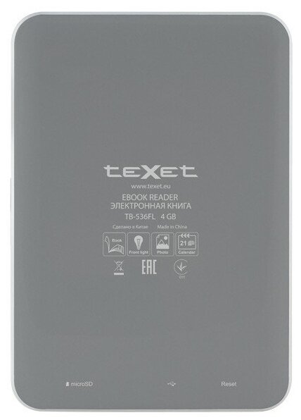 Display type: E-Ink, diagonal: 6", E-Ink display generation: Pearl, design features: built-in backlight, book and document formats: CHM, DJVU, DOC, EPub, FB2, HTML, PDF, PalmDOC, RTF, TXT , display resolution: 800x600