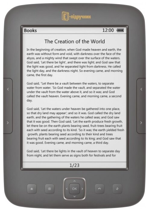 Display type: E-Ink, diagonal: 6", E-Ink display generation: Pearl, book and document formats: CHM, DJVU, DOC, EPub, FB2, HTML, PDF, PalmDOC, RTF, TXT, XLS, display resolution: 800x600