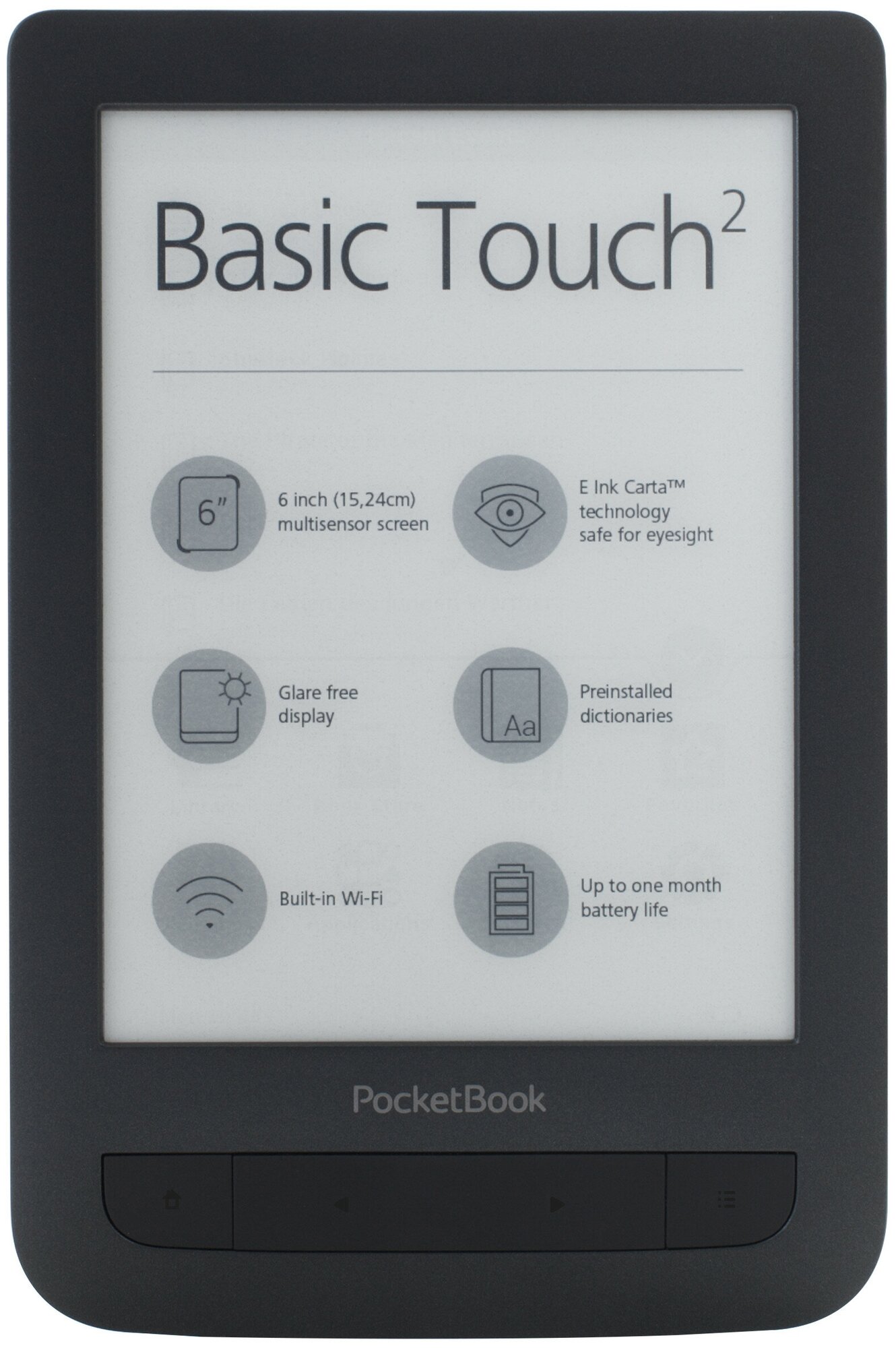 Display type: E-Ink, diagonal: 6", E-Ink display generation: Carta, design features: paging buttons, touch screen, wireless connection: Wi-Fi, book and document formats: CHM, DJVU, DOC, EPub, FB2 , HTML, PDF, RTF, TXT, display resolution: 8