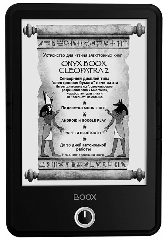 Display type: E-Ink, diagonal: 7", E-Ink display generation: Carta, design features: built-in backlight, paging buttons, touch screen, wireless connection: Bluetooth, Wi-Fi, book and document formats: CHM, DJVU, DOC, EPub, FB2, HTML, P