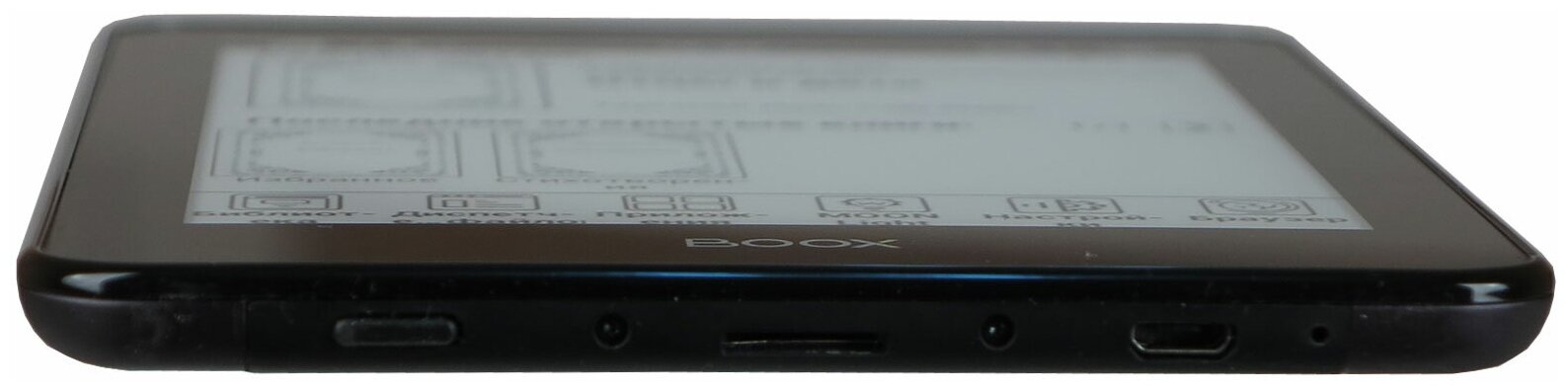 Thin aluminum alloy body, ASAHI protective glass, Google play, dictionaries; USB interface: yes; Charging from USB: yes; Charging from the network: yes; Support for formats: PRC, MOBI; Processor frequency: 1000 MHz