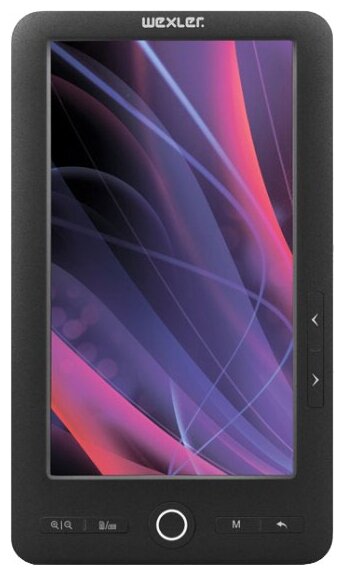 Display type: color LCD, diagonal: 7", design features: built-in backlight, book and document formats: DOC, EPub, FB2, HTML, PDF, PalmDOC, RTF, TXT