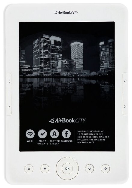 Display type: E-Ink, diagonal: 6", E-Ink display generation: Pearl, design features: paging buttons, wireless connection: Wi-Fi, book and document formats: CHM, DJVU, DOC, EPub, FB2, HTML, PDF, PalmDOC, RTF, TXT, XLS