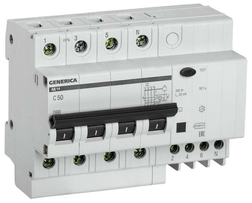 Automatic residual current switch 4p 50A 30mA AD14 GENERICA IEK MAD15-4-050-C-030