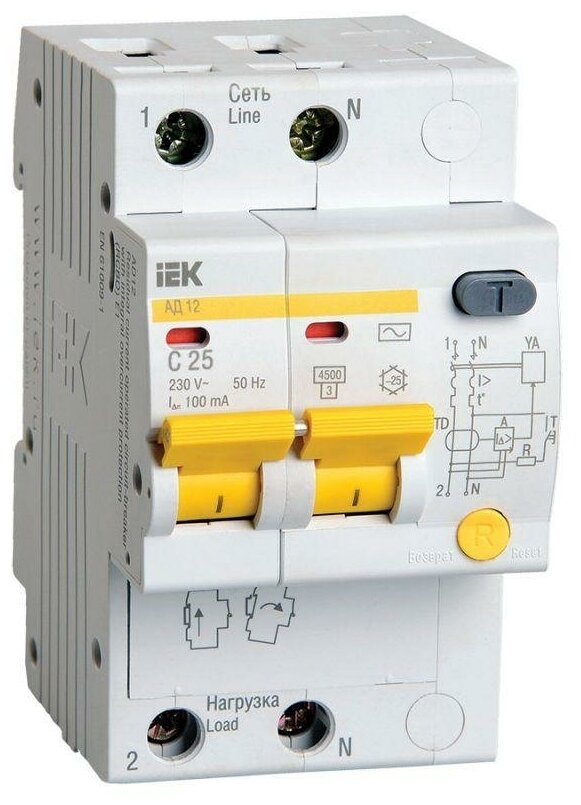 Automatic residual current switch 2p C 25A 100mA type AC 4.5kA AD-12 IEK
