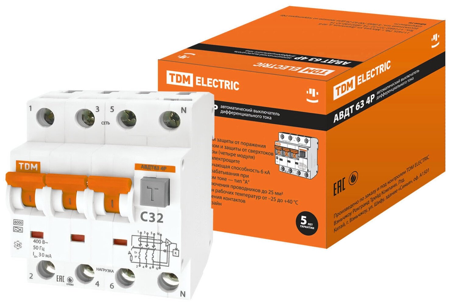 Automatic differential switch AVDT-63/4P C32 30mA type A TDM SQ0202-0019
