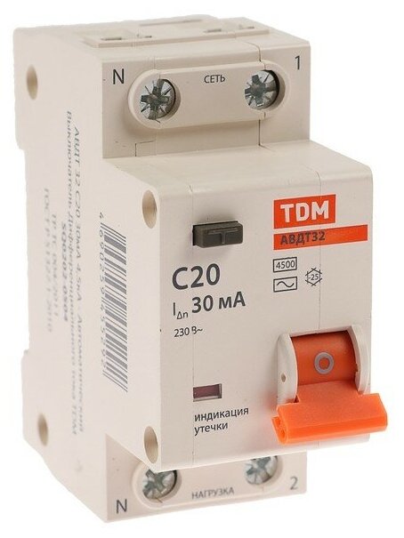 Differential automatic machine TDM AVDT 32, 2p, 20 A, 30 mA, 4.5 kA 4214448