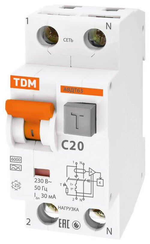 RCBO 63 2Р1Р+N B16 10mA 6kA type A - Automatic Residual Current Breaker TDM