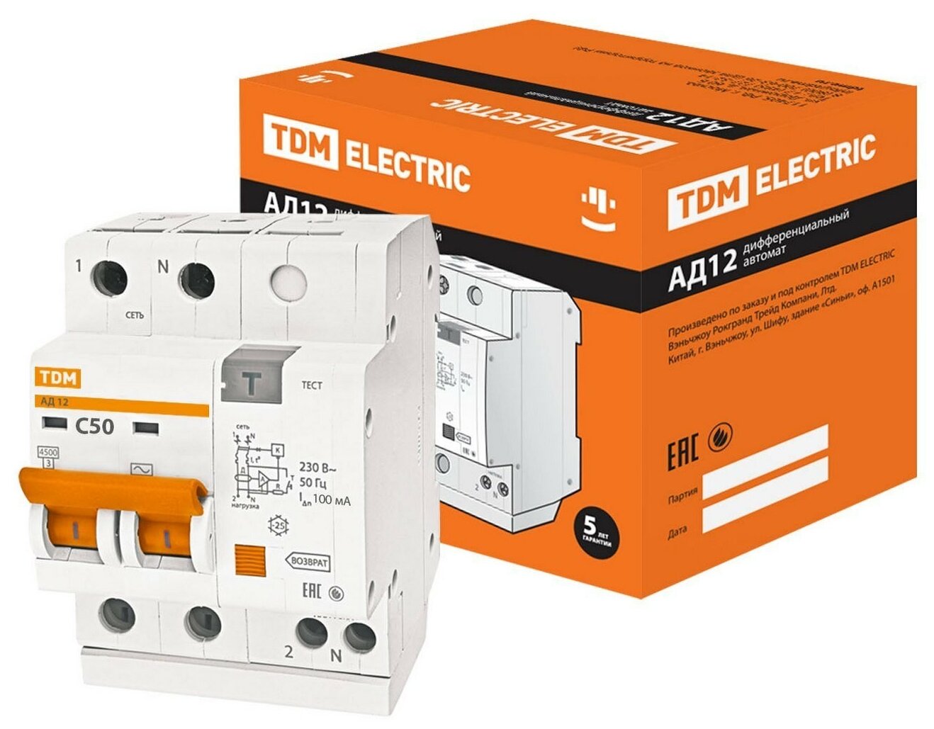 Differential automatic circuit breaker AD12 2P 50A 100mA TDM