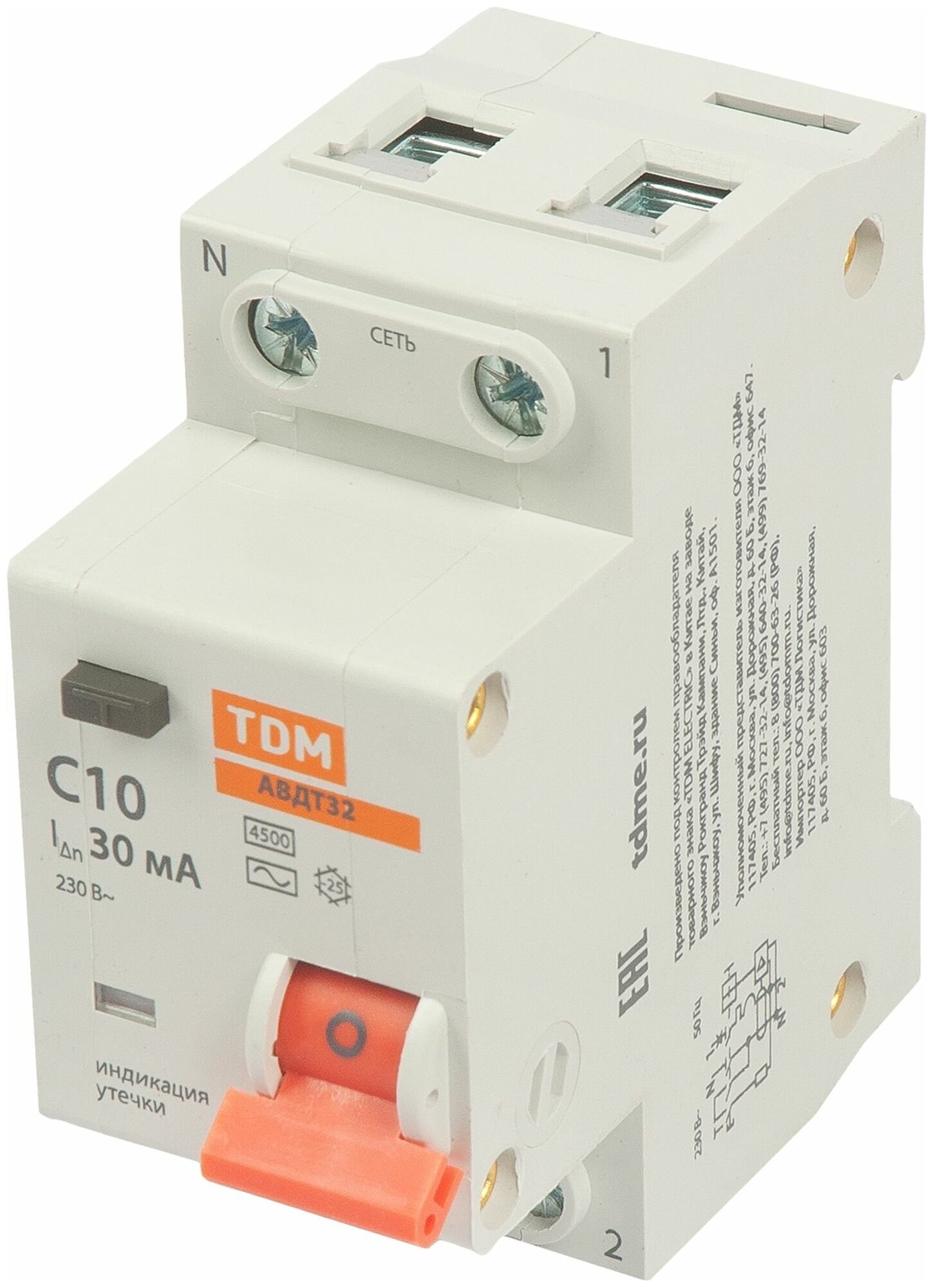 RCBO 32 2P1P+N C16 30mA 4.5kA type AC - Automatic Residual Current Breaker TDM