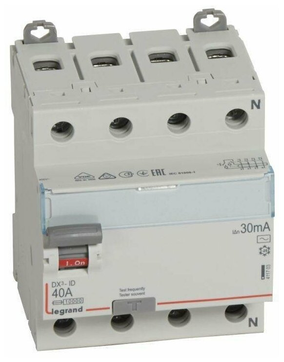 Diff switch current 4p 40A 30mA type AC DX3 Legrand 411703, 1 piece