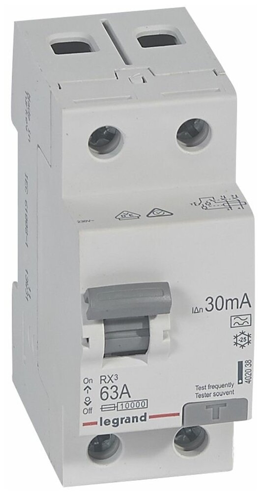 Residual current switch RCD 2p 63A 30mA type A RX3 Legrand 402038, 1 piece