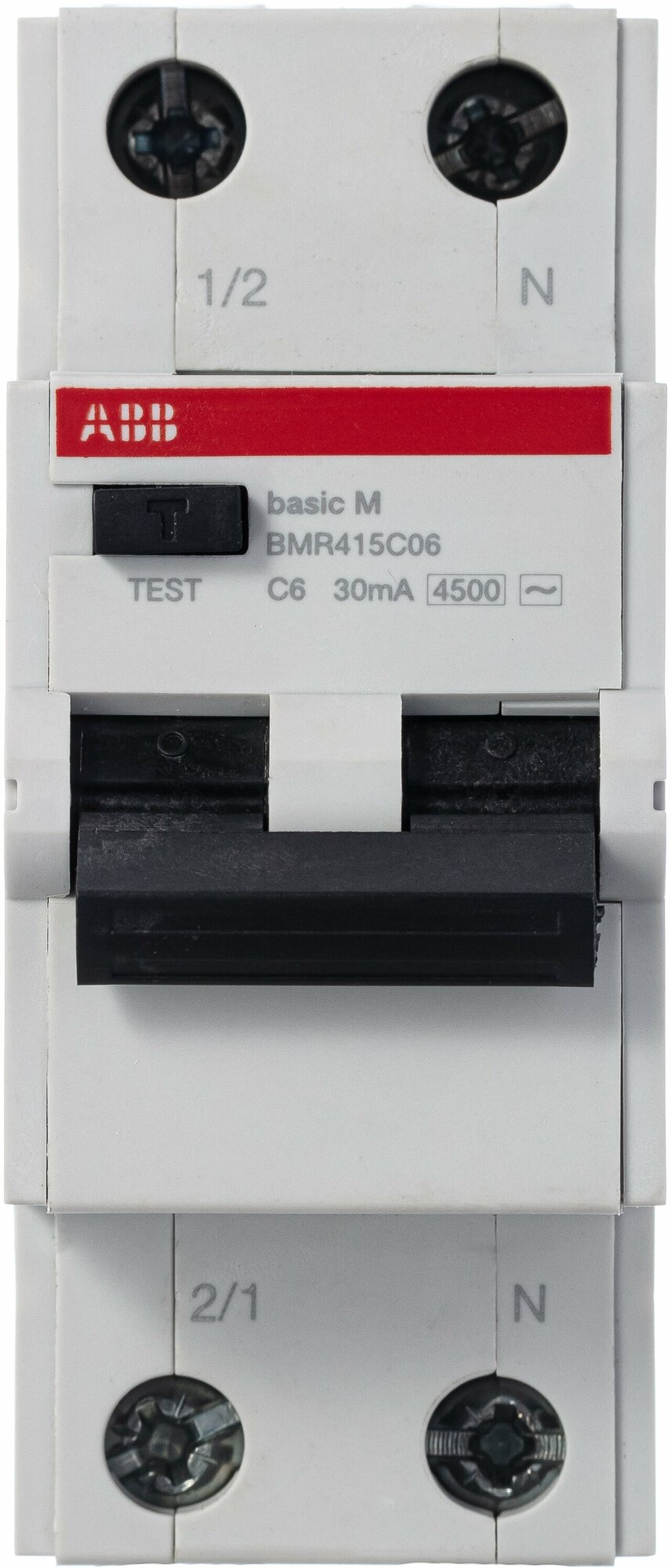 ABB Automatic residual current switch, 1P+N, 6A, C, 4.5kA, 30mA, AC, BMR415C06 2CSR645041R1064