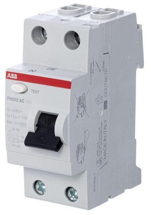 Residual current switch RCD 2p 63A 30mA type AC FH202 ABB 2CSF202004R1630, 1 piece