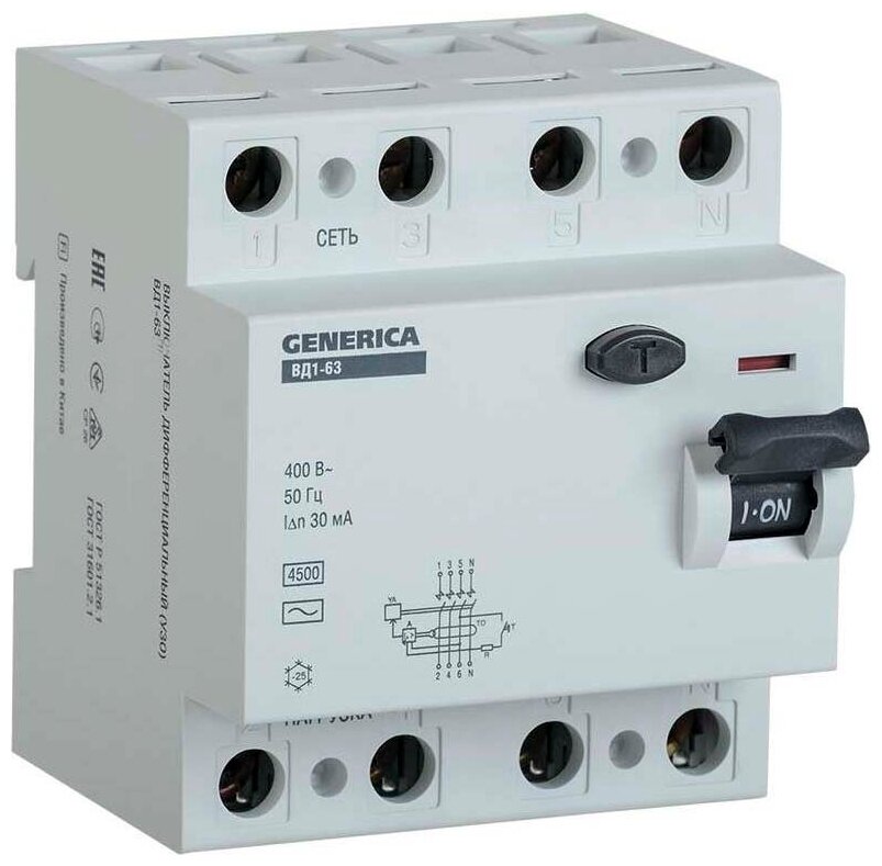 Residual current switch Generica, 4p 32A 30mA type AC VD1-63. MDV15-4-032-030