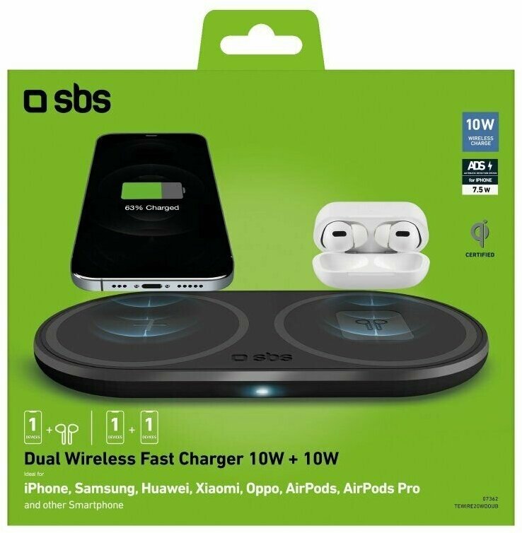Wireless charger for Iphone SBS Mobile for 2 devices, charging base, 10 W