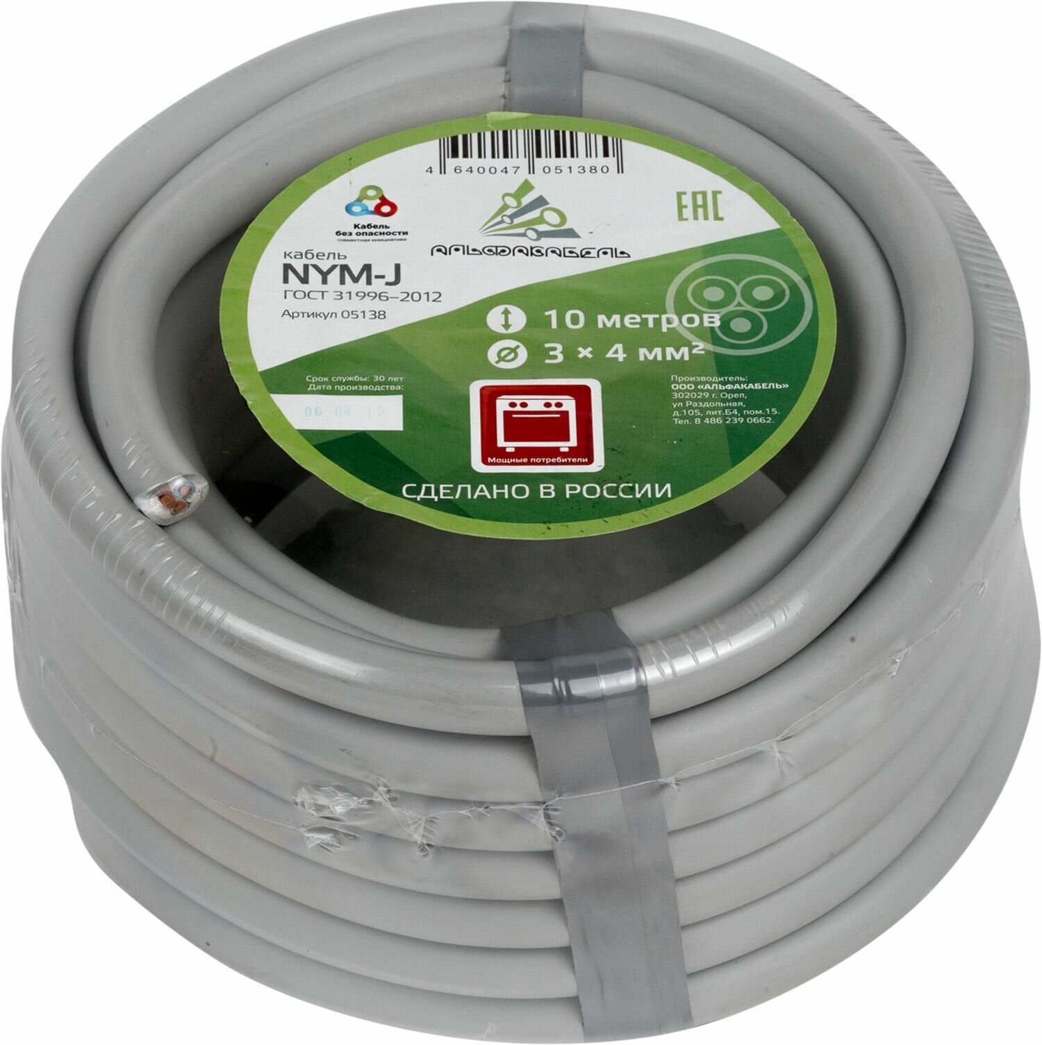 Power cable NYM NUM 3x4 10m