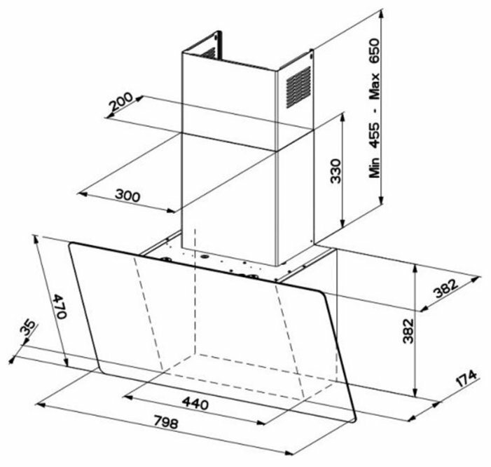 Form factor: dome, operating modes: exhaust / circulation, maximum productivity: 500 m³/hour, installation type: wall-mounted, lighting type: halogen lamp, installation width: 90 cm, additional functions: intensive