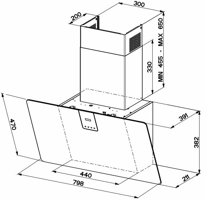 Form factor: dome, operating modes: exhaust / circulation, maximum productivity: 500 m³/hour, installation type: wall-mounted, lighting type: halogen lamp, installation width: 90 cm, additional functions: intensive