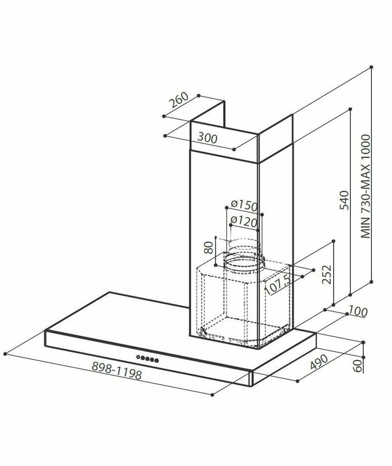 Form factor: dome, operating modes: exhaust / circulation, maximum productivity: 500 m³/hour, installation type: wall-mounted, lighting type: halogen lamp, installation width: 90 cm, additional functions: intensive