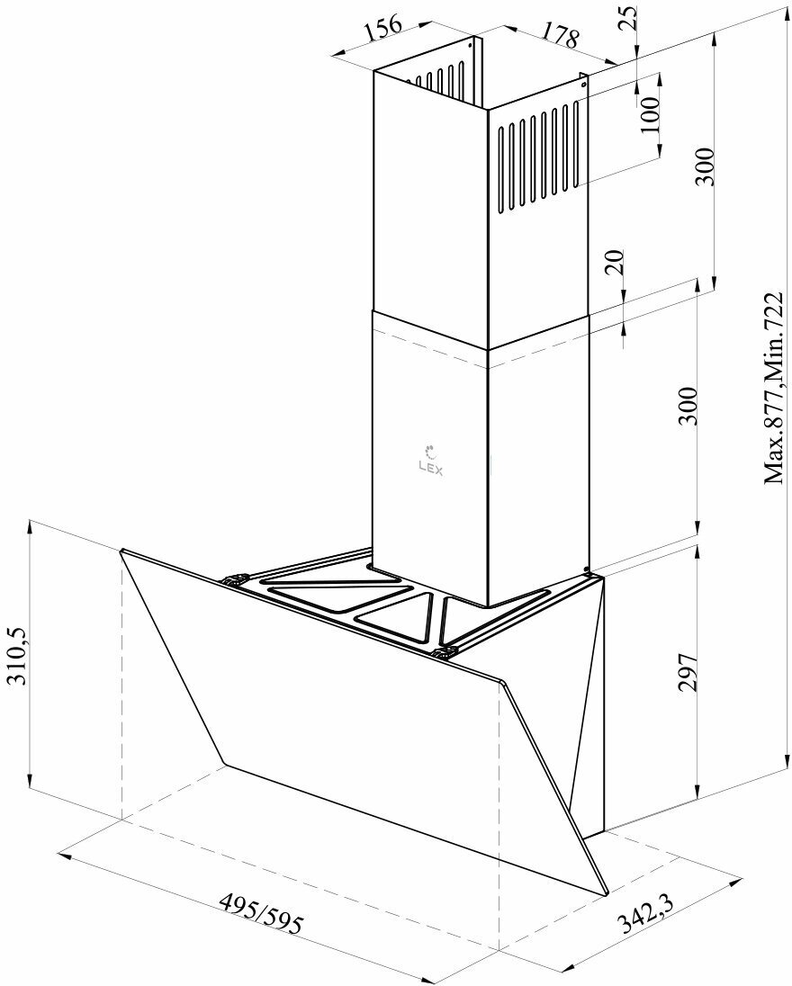 Form factor: dome, operating modes: exhaust / circulation, maximum productivity: 500 m³/hour, installation type: wall-mounted, lighting type: halogen lamp, installation width: 90 cm, additional functions: intensive