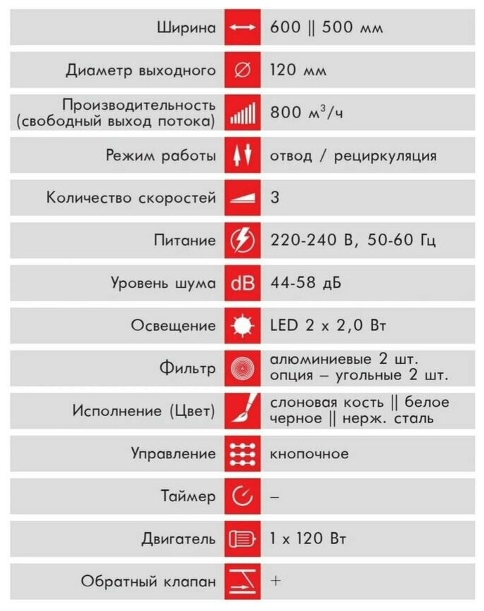 Form factor: built-in, width: 60 cm, depth: 28.40 cm, operating modes: drain / circulation, installation location: in a cabinet, maximum productivity: 800 m³/hour, installation type: wall-mounted, filter: grease, control type: m
